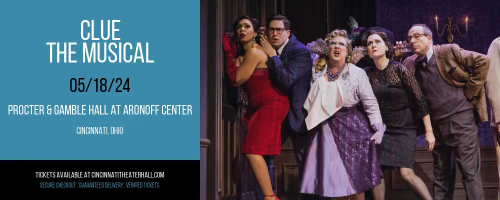 Do you want to know the finest thing to come out of theatre since the beginning of time? The amazing Clue - The Musical and luckily this is perfect timing, because for spring, 2024, Clue - The Musical will be back touring the US! This is such a great time for fans of musicals! This exciting event in May, will be hosted by the top notch Procter & Gamble Hall at Aronoff Center,Cincinnati, Ohio, just right for the night! If you want to invite yourself along on Saturday 18th May 2024, get a set of tickets today, you can get immediately by selecting the buy button on this page!