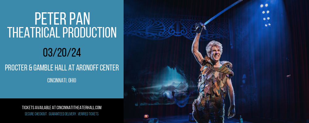 If Procter & Gamble Hall at Aronoff Center has to cancel the Peter Pan – Theatrical Production event, your tickets will be fully refunded, providing you purchased them from a legitimate source, such as direct from the Procter & Gamble Hall at Aronoff Center Box Office or TicketSqueeze.com etc. If the Peter Pan event is postponed, your tickets will be automatically valid for the next scheduled date at Procter & Gamble Hall at Aronoff Center. No action is needed.