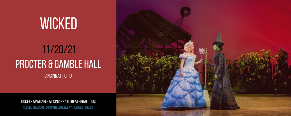 Are you tired of the same old Saturday night entertainment? Do you need to see something thrilling and unique to make your night a night to remember? Then you’ll be glad to know that the Procter & Gamble Hall has booked the Grammy award winning Wicked to take the stage on Saturday 20th November 2021 for what can only be described as an evening of unforgettable entertainment. These unbelievable Broadway performers deliver a award-winning show every time and have become infamous as the “can’t miss” performer of 2021. So don’t end your work week with another night in front of the TV, because you are one click away from experiencing the most unparalleled Broadway show. Click that Buy Tickets button below to see Wicked on Saturday 20th November 2021 at the Procter & Gamble Hall!
