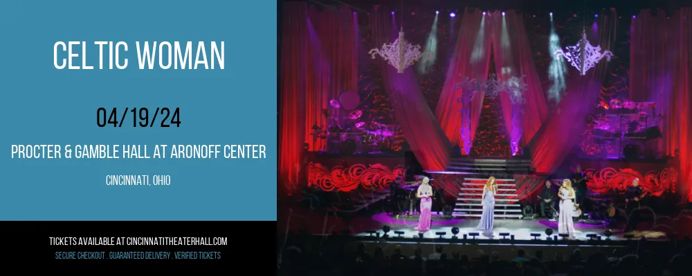 You can buy Procter & Gamble Hall at Aronoff Center Celtic Woman tickets easily by going to TicketSqueeze.com or by clicking the "Buy Tickets" button on this page. Alternatively you can visit the Procter & Gamble Hall at Aronoff Center Box Office directly, or call them on (513) 721-3344.