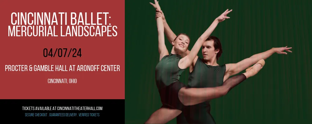 It would be silly not to go along to watch the stunning Cincinnati Ballet: Mercurial Landscapes on Sunday 7th April 2024. The greatest ballet of them all is touring the US for spring, 2024 and seats are now on general release. This delightful spectacular will shock your senses for a long while after curtain call. You'll be so involved in the tale and your eyes glues to the stage while witnessing these seamless dance routines unfolding on a comfortable Sunday evening down at the stunning Procter & Gamble Hall at Aronoff Center of Cincinnati, Ohio, in April. To book your seats and secure the best in the house, simply press the 'get tickets' icon now!