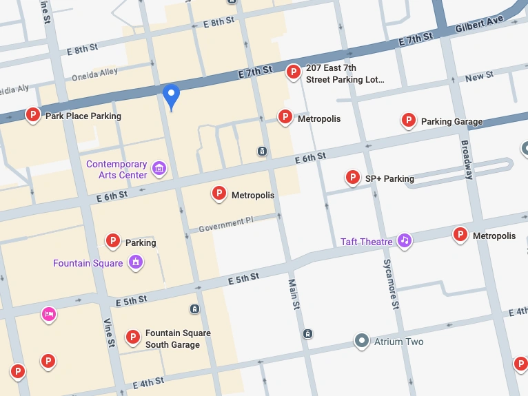 On the street blocks of Sixth St., Walnut St., and Seventh St. there are several independent valet operators just footsteps from an Aronoff Center entrance. Valet stations are located adjacent to Nada Restaurant, Nicholson’s Gastropub, and Jeff Ruby’s Steakhouse.